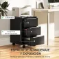 ¿Listo para organizar tu oficina en casa? Esta cajonera con cerradura de [BRAND NAME] te facilitará la tarea. Su sistema de cierre centralizado con una sola llave asegura que todos los cajones queden bloqueados, manteniendo tus documentos seguros y protegidos. Con 3 cajones y una encimera espaciosa, ofrece un amplio espacio de almacenamiento.Características:- Esta cajonera de oficina incluye un sistema de cierre centralizado con una sola llave para todos los cajones- Está equipada con 4 ruedas giratorias de 360°, dos de ellas con frenos para mayor estabilidad- Mueble archivador cuenta con 3 cajones y una encimera espaciosa para guardar cosas- Los cajones disponen de rieles de extensión completa para facilitar su apertura y acceso- Está fabricada en melamina resistente, que es fácil de limpiar y mantener- Ideal para estudio, dormitorio, sala de estar u oficina en casa- Incluye 2 llaves para el sistema de cierre- Requiere montaje Especificaciones:- Color: negro- Material: melamina de madera y MDF- Medidas totales: 40x40x63,5 cm (LxANxAL)- Medidas interiores del cajón: 30,5x32,5x9,5 cm (LxANxAL)- Diámetro de las ruedas: Ø50 mm- Carga máxima: 10 kg (encimera) y 5 kg (cajón)- Referencia: 836-301V00BKEl paquete incluye:- 1 x Cajonera de oficina- 2 x Llave- 1 x Manual de instrucciones
