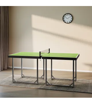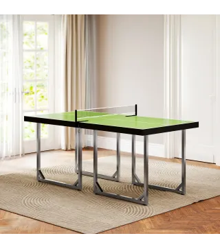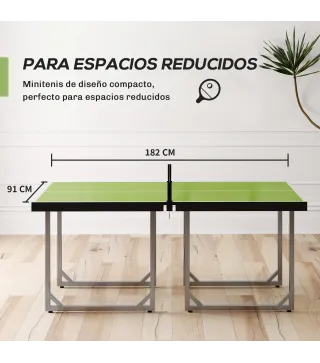 Desafía a amigos o familiares con esta mesa de ping-pong plegable. Fabricada con materiales resistentes y un diseño estable, ofrece una experiencia de juego cómoda y segura. Incluye la red de juego y, al finalizar la partida, puede plegarse y guardarse fácilmente ocupando el mínimo espacio. Ideal para disfrutar del tenis de mesa en interiores o en exteriores protegidos.Características:- Mesa de ping-pong plegable compuesta por dos mitades, ideal para espacios reducidos- Las dos mitades del tablero se separan para facilitar el almacenamiento y transporte- Apta para uso en interior y exterior protegido- Estructura con marco de acero, tablero MDF y red incluida- No requiere montaje Especificaciones:- Color: verde, negro- Material: acero, MDF- Medidas totales: 182x91x76 cm (LxANxAL)- Medidas plegada: 91,4x91,4x4,2 cm (LxANxAL)- Altura de la red: 14 cm- Altura de la mesa: 76 cm- Referencia: A90-130GNEl paquete incluye:- 1 x Mesa de ping-pong plegable- 1 x Manual de instrucciones