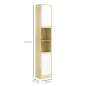 ¿Has visto este armario multiusos de [BRAND NAME]? Su diseño y formato lo hacen ideal como mueble para baño, especialmente para espacios reducidos y estrechos. Se puede usar como mueble auxiliar de cocina, comedor, etc. Está compuesto por 2 estantes abiertos y 2 armarios con bonitas puertas con tiradores integrados y bonito grabado en líneas en diagonal. Cada uno de ellos con una balda interior para que puedas tener todo debidamente ordenado ¿Aún te lo estás pensando?Características:- Armario de baño de estilo actual y elegante que combinará fácilmente en tu baño o cualquier otro espacio de tu casa- Mueble alto y compacto, ideal para esquinas y espacios reducidos o estrechos- Con 2 estantes abiertos y 2 armarios con puerta y balda interior ajustable en altura- Puertas con tiradores integrados en la misma madera para facilitar la apertura y cierre de las mismas- Mueble de baño hecho de MDF y melamina de madera, resistente y de fácil mantenimiento- Diseño anti-vuelco de seguridad, ideal sobre todo en casas con niños pequeños y mascotas- Se requiere montaje Especificaciones:- Color: blanco y roble- Material: MDF y melamina de madera- Medidas totales: 30x24x170 cm (LxANxAL)- Medidas de las puertas: 26,8x48,3 cm (LxAL)- Medidas interiores de los armarios: 27,3x21x51,5 cm (LxANxAL)- Medidas de los estantes abiertos: 27,3x22,5x27,5/27 cm (LxANxAL)- Peso máximo soportado: 50 kg (total), 5 kg (cada estante)- Referencia: 834-240V00AKEl paquete incluye:- 1 x Armario de baño- 1 x Manual de instrucciones