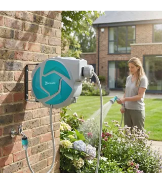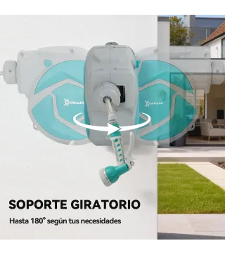 Transforma tus espacios exteriores con el carrete de manguera retráctil de [BRAND NAME]. Extiende fácilmente la manguera de 10 metros con un simple tirón y observa cómo se enrolla de manera ordenada al finalizar. Perfecto para jardines, terrazas y balcones, este carrete de manguera a presión incluye un versátil aspersor con siete patrones de pulverización únicos, asegurando que cada rincón de tu jardín reciba el cuidado que merece. Fácil de montar y listo para usar.Características:- Manguera enrollable de 10 m se retrae automáticamente, simplificando el almacenamiento después de su uso- Aspersor multifuncional gira, ofreciendo siete patrones de rociado únicos- Adecuada para regar jardines, céspedes, patios, balcones y coches- Incluye tornillos de expansión para montaje en pared- Este enrollador de manguera jardín requiere montaje Especificaciones:- Color: gris claro y verde- Material: plástico- Medidas totales: 28x14x34 cm (LxANxAL)- Longitud de la manguera: 10 m (de agua)- Diámetro de la manguera: (interior) 8 mm, (exterior) 12 mm, (de agua)- Longitud de la manguera: 1 m (de agua)- Presión de trabajo: 10 bar- Presión de rotura: 30 bar- Temperatura de trabajo: -5-45 ℃- Referencia: 845-260V00GNEl paquete incluye:- 1 x Carrete de manguera de agua- 1 x Manual de instrucciones